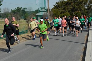 "On your mark, get set...go." More than 35 runners took off from the starting line in front of the fitness center during the St. Patrick's Day Fun Run, March 16, 2013, at Kunsan Air Base, Republic of Korea.Runners participated in either a five- or 10-kilometer run, which was coordinated by the 8th