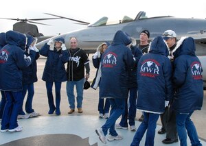 The Air Force's top enlisted leader visited the 8th Fighter Wing Dec. 29 and 30 during a year-end tour of Pacific Air Forces bases.During the visit, Chief Master Sgt. of the Air Force James Roy, and his wife Paula, toured the base, presented stripes to Airmen who were promoted, and spoke with Airmen
