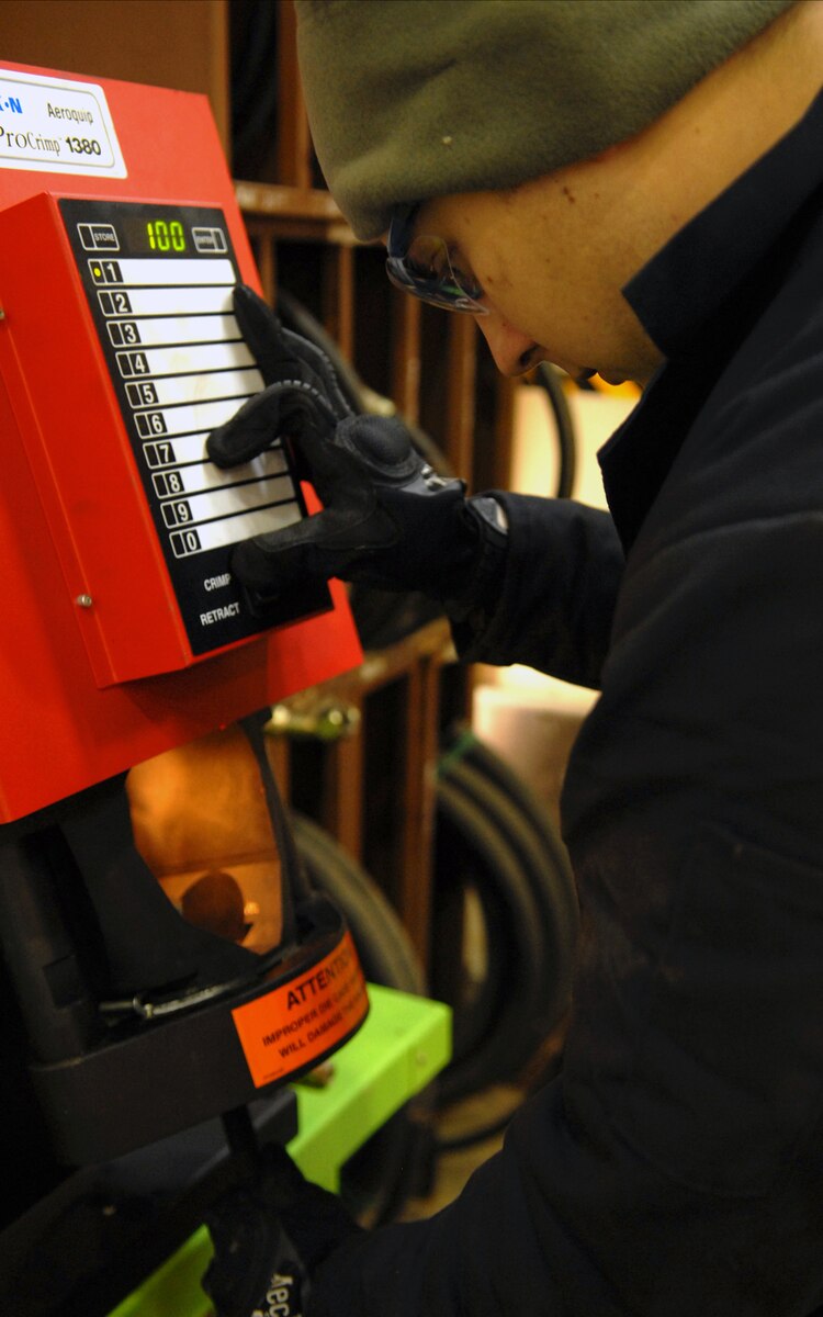 Airman 1st Class Jared France, 8th Logistic Readiness Squadron vehicle maintenance technician verifies the alternator of a 25-ton snow sweeper is receiving the correct amount of voltage on Kunsan Air Base, Republic of Korea, Dec. 11, 2012. France was assisted by Senior Airman Nicholas Lamendola, 8th LRS fire-truck maintenance technician, who help repair the vehicles used by the 8th Civil Engineer Squadron to clear the base of snow. (US Air Force photo by Staff Sgt. Tong Duong/ released)