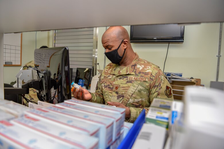 Brown is the main pharmacist and is aided by three NCOs who help screen, package and distribute medication to patients. His duties include ensuring patients are prescribed the correct dosage of medication, without negative side effects for the ailment being treated.
